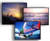 Strand mit Sand und Steinen, ca. 450 m lang, wo sich die Windsurf-Schule des